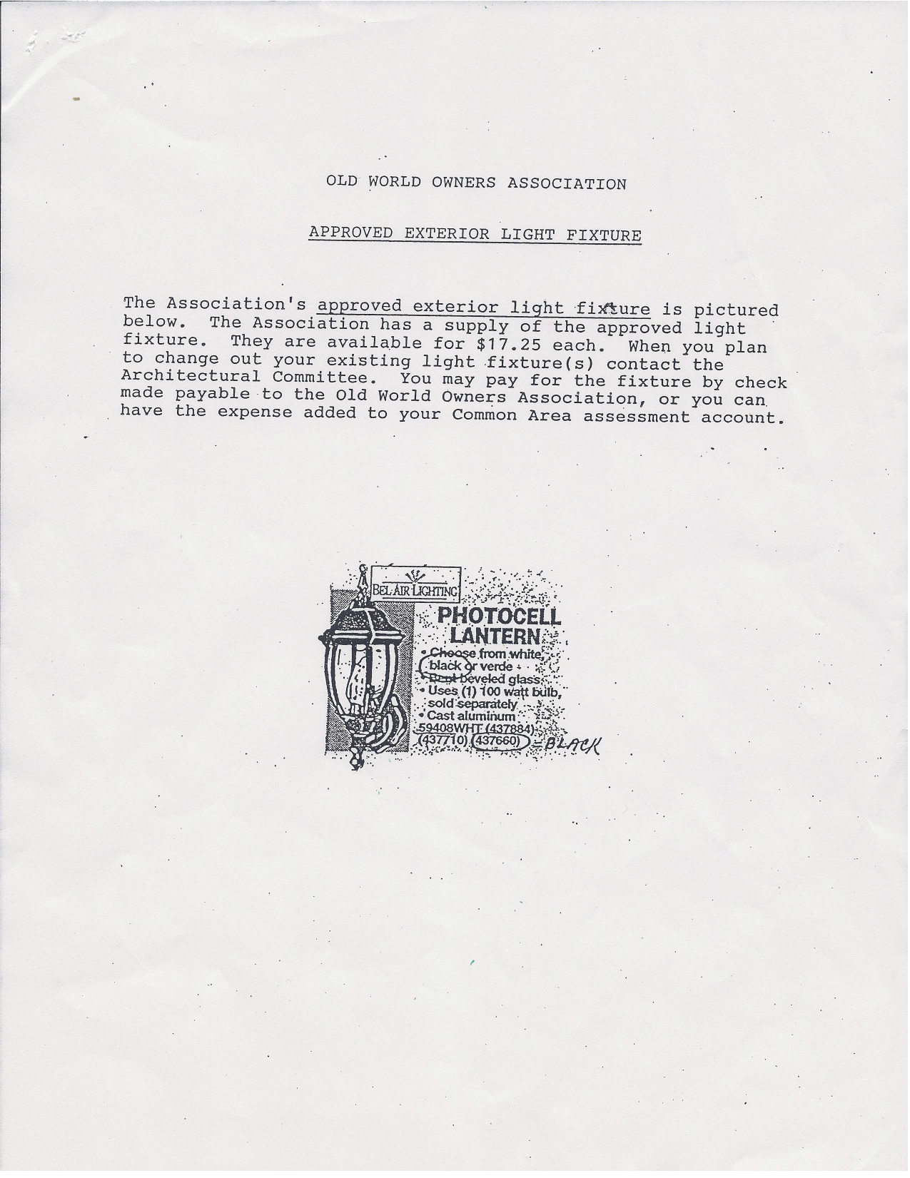 Sincerely, Your Old World Village Architectural Committee