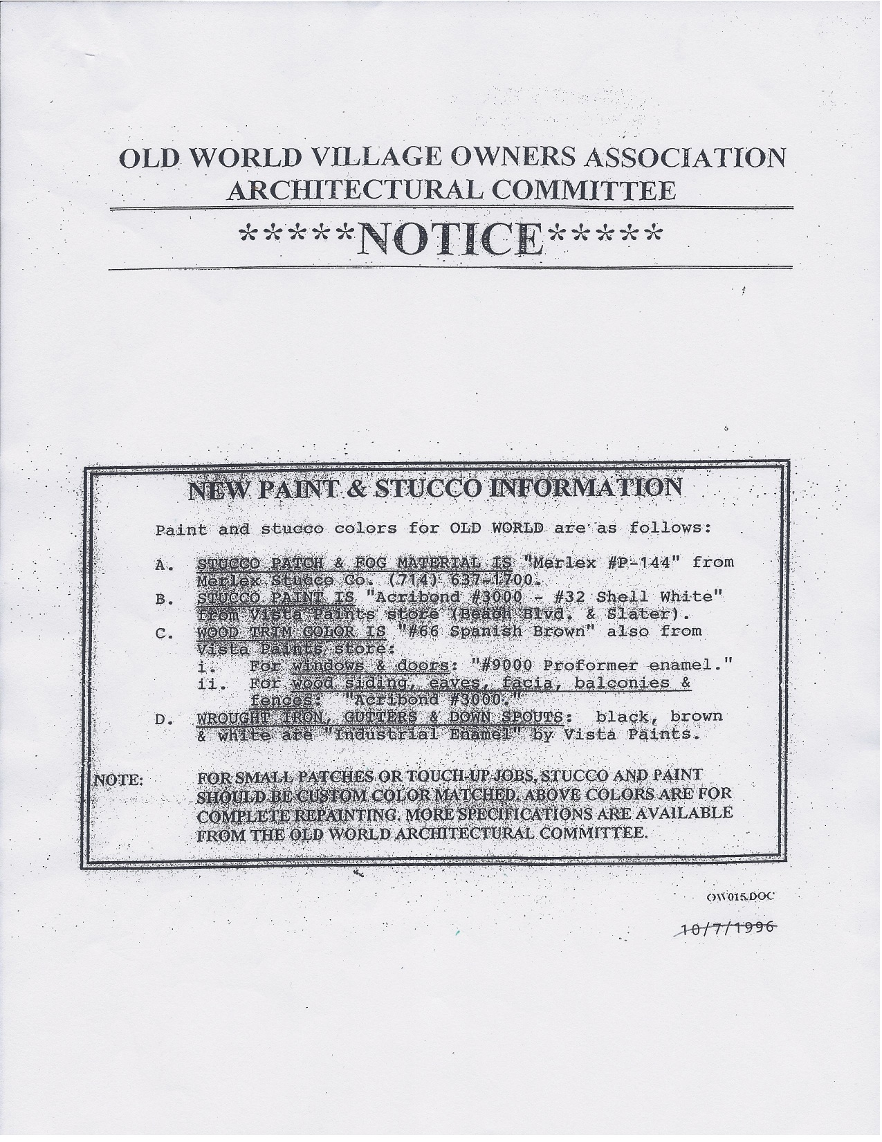 Sincerely, Your Old World Village Architectural Committee
